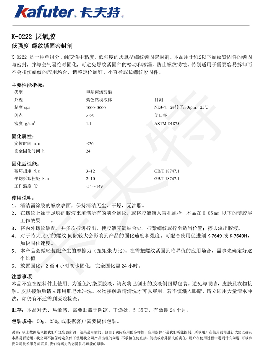K-0222低強(qiáng)度螺紋鎖固密封劑