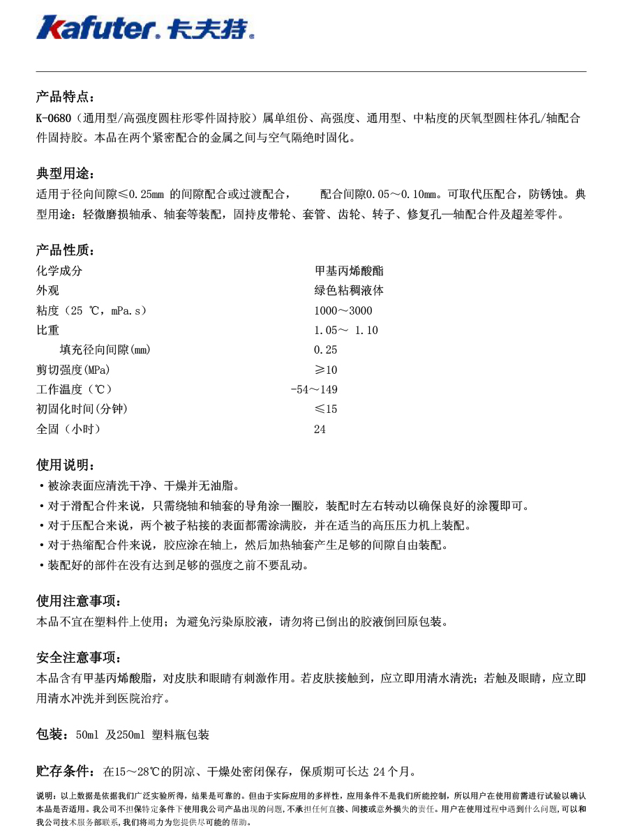 K-0680高強(qiáng)度圓柱零件固持膠