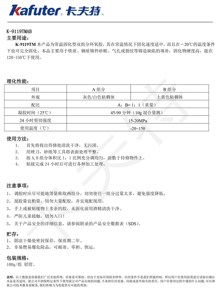 K-9119TM 耐高溫鑄工膠