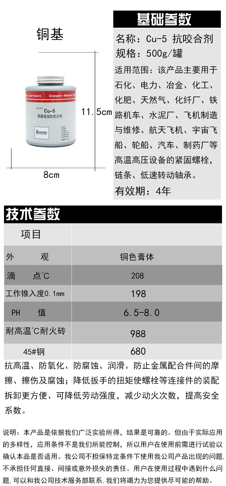 Cu-5 銅基高溫抗咬合劑