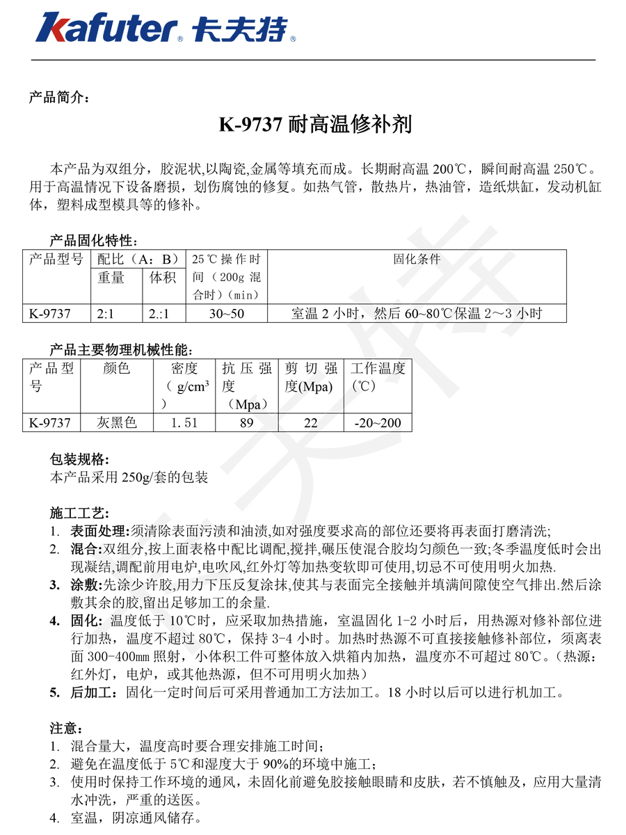K-9737耐高溫金屬修補(bǔ)劑